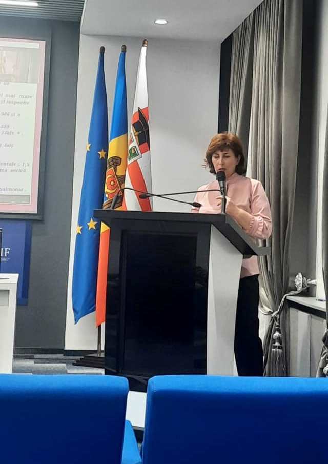 Departamentul Pediatrie USMF "Nicolae Testemitanu". Președintele Comitetului organizatoric - doamna Ala Donos, prof. univ., dr. hab. șt. med. a prezentat raportul de baza privind managementul diagnostic și terapeutic al pneumoniei comunitare la copilul multidisciplinar.