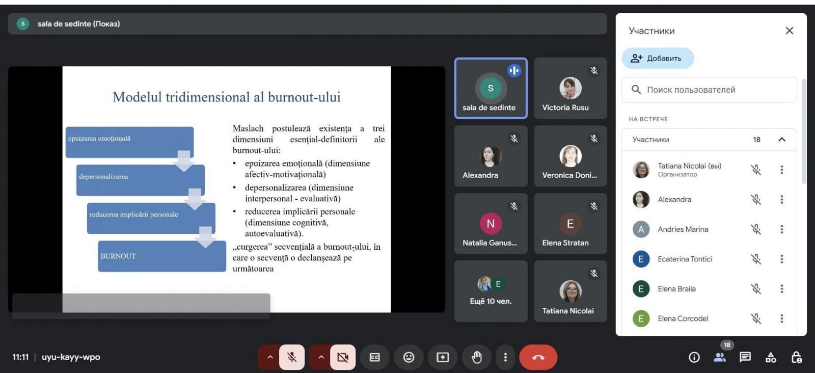 Unul din subiectele puse în discuție a fost sindromul de epuizare profesională, care necesită a fi identificat la timp și prevenit prin măsuri de optimizare a timpului și condițiilor de activitate, inclusiv crearea și menținerea unui mediu de lucru colaborațiv.