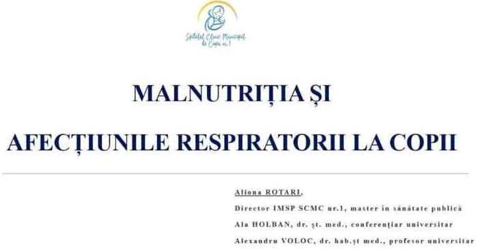 - Malnutriția și afecțiunile respiratorii la copii (Aliona ROTARI, master în sănătate publică, Director IMSP SCMC nr.1);