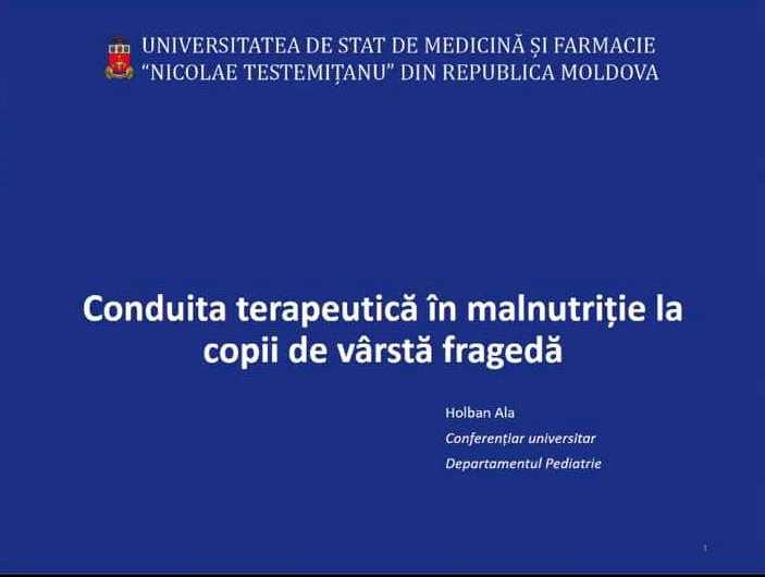 - Conduita terapeutică în malnutriție la copii (Ala HOLBAN, dr. șt. med., conferențiar universitar);