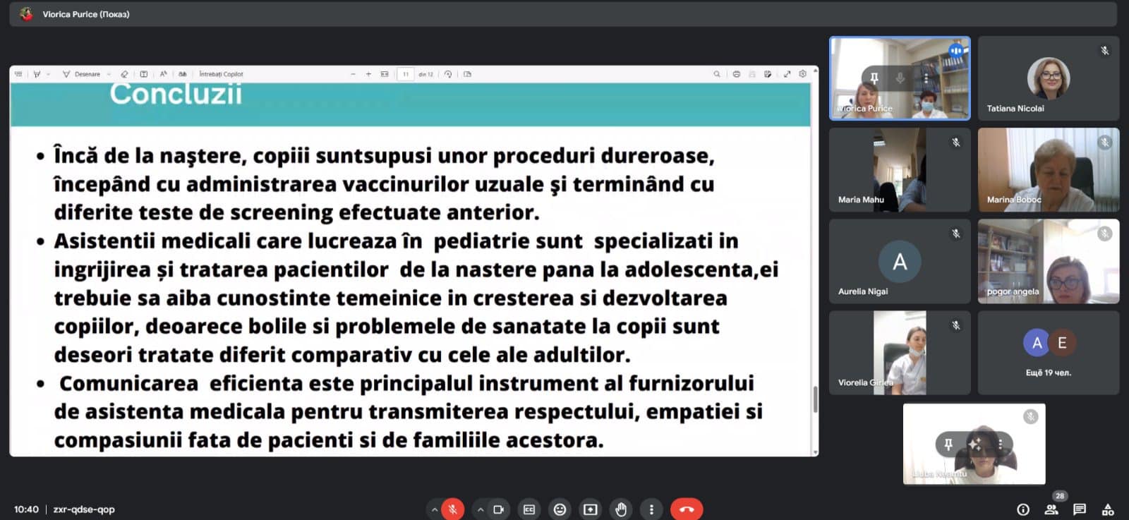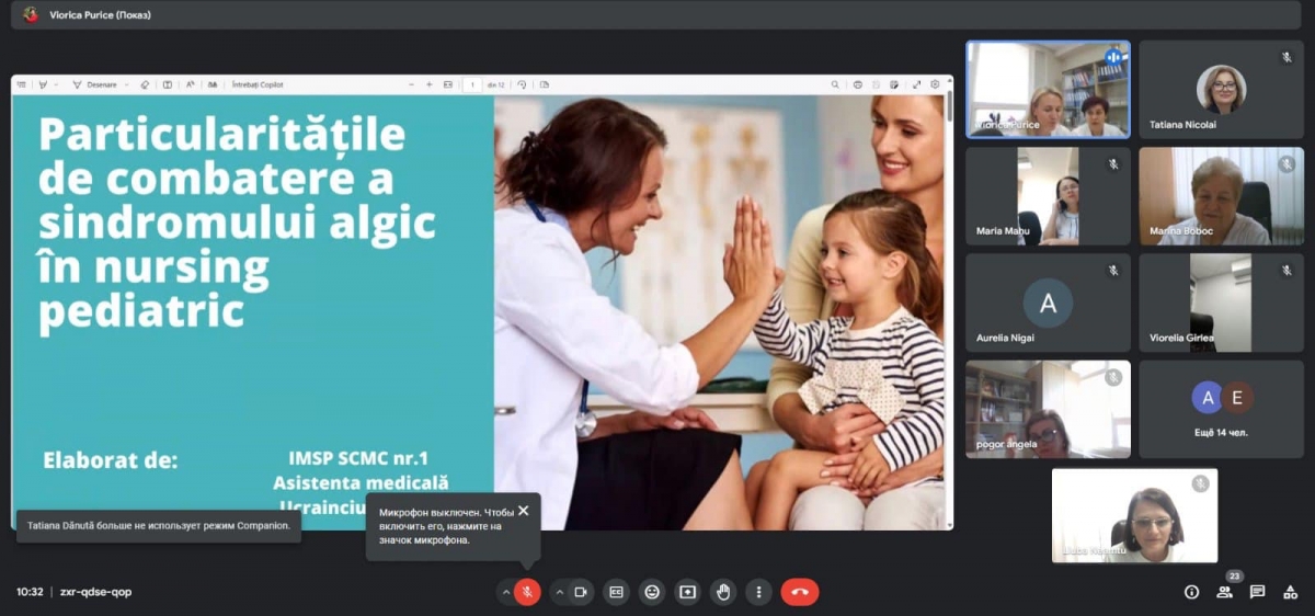 Pe data de 12.04.2024, a avut loc o ședință online dedicată asistentelor medicale din IMSP SCMC nr.1, cu tema "Particularitățile de combatere a sindromului algic în nursing pediatric". Doamna Liliana Ucrainciuc, asistenta medicală din secția reanimare și terapie intensivă, a prezentat informații valoroase despre gestionarea durerii la copii.