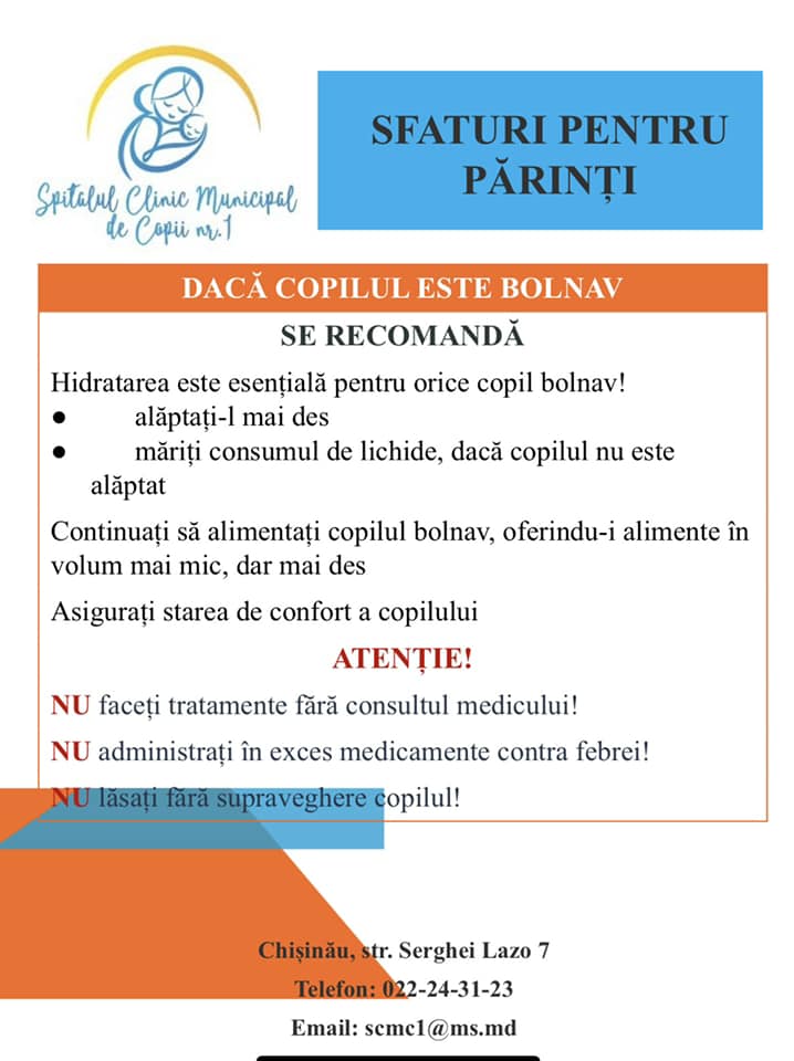 Valul crescut de infecții respiratorii acute la copii și respectiv creșterea numărului de adresări/ spitalizări în perioada lunilor noiembrie-decembrie au servit drept imbold pentru echipa medicala a instituției să elaboreze un pliant informativ pentru părinți.