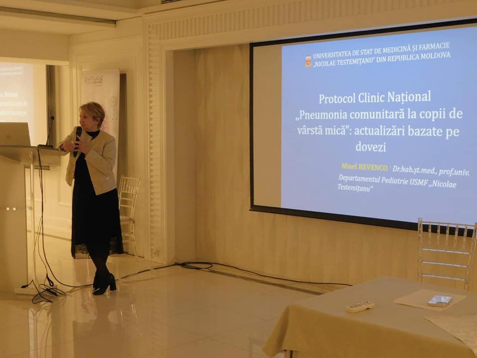 Dna Ninel REVENCO, dr. hab. med., profesor universitar, sefa Departamentului Pediatrie USMF „Nicolae Testemițanu”, președinta Societății de Pediatrie din Republica Moldova, a salutat inițiativa, referindu-se la impactul pneumoniei asupra morbidității și mortalității copiilor mici în întreaga lume și în Republica Moldova.