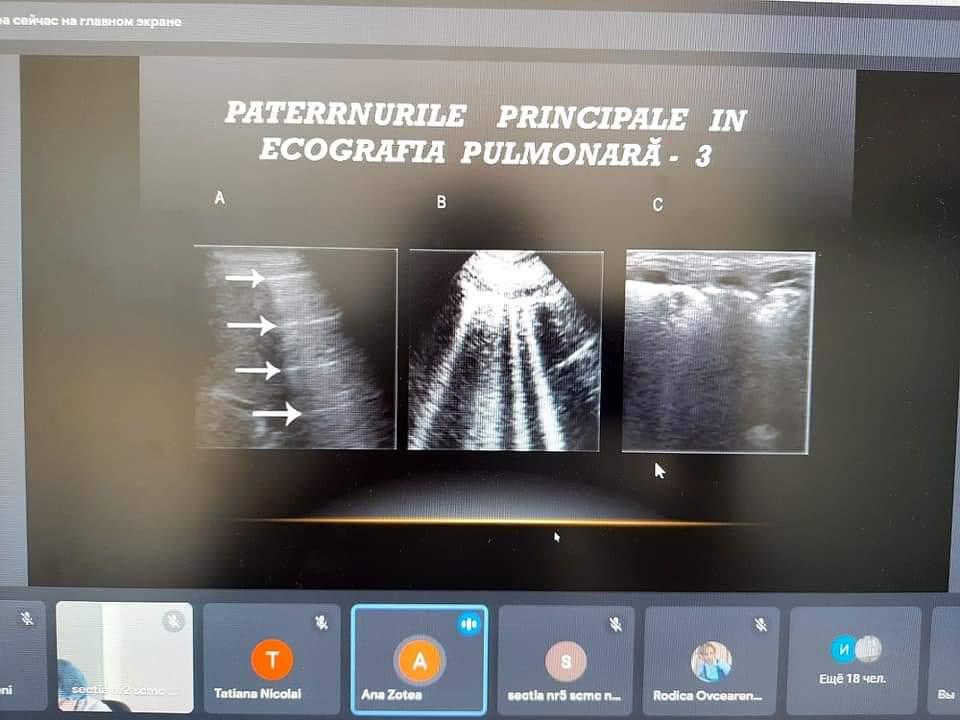 Cazul clinic relevant, asistat reușit în cadrul instituției în ianuarie 2022, a completat în mod deosebit informația prezentată. Doamna Neamțu Liuba, vicedirector medical, care a coordonat studiul de caz a prezentat evoluția procesului consultativ diagnostic al unui pacient în vârstă de 32 luni, cu diagnosticul de Pneumonie franc - lobară, în care ecografia pulmonară a permis identificarea pleureziei exudative și dinamica nefavorabilă a procesului pe fondal de tratament aplicat, influențând argumentat modificarea conduitei clinice.