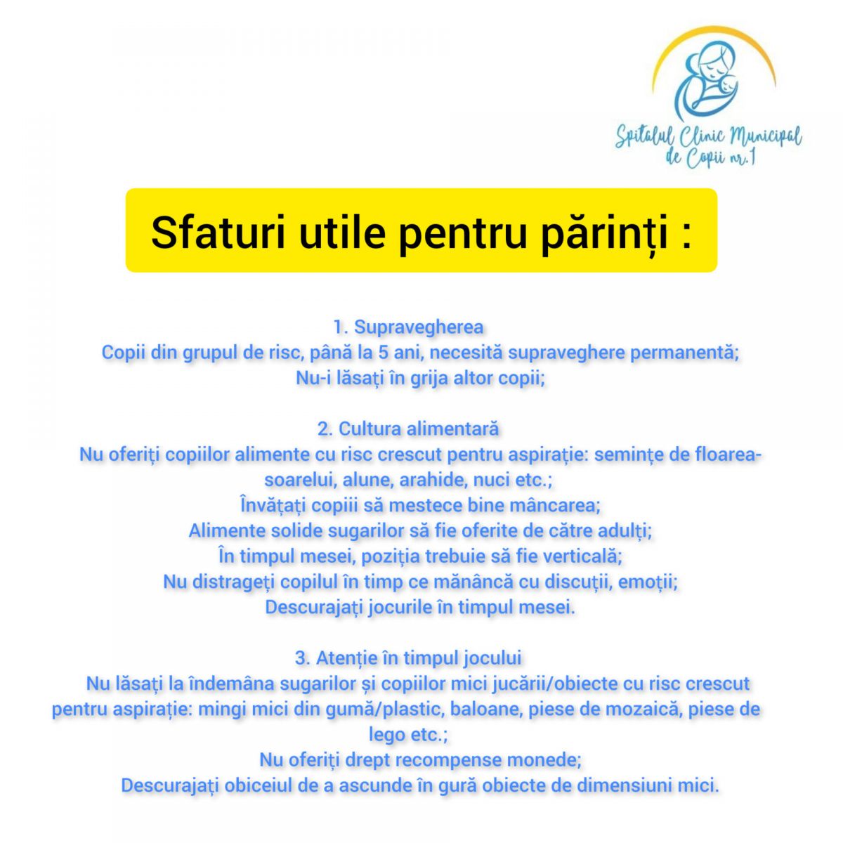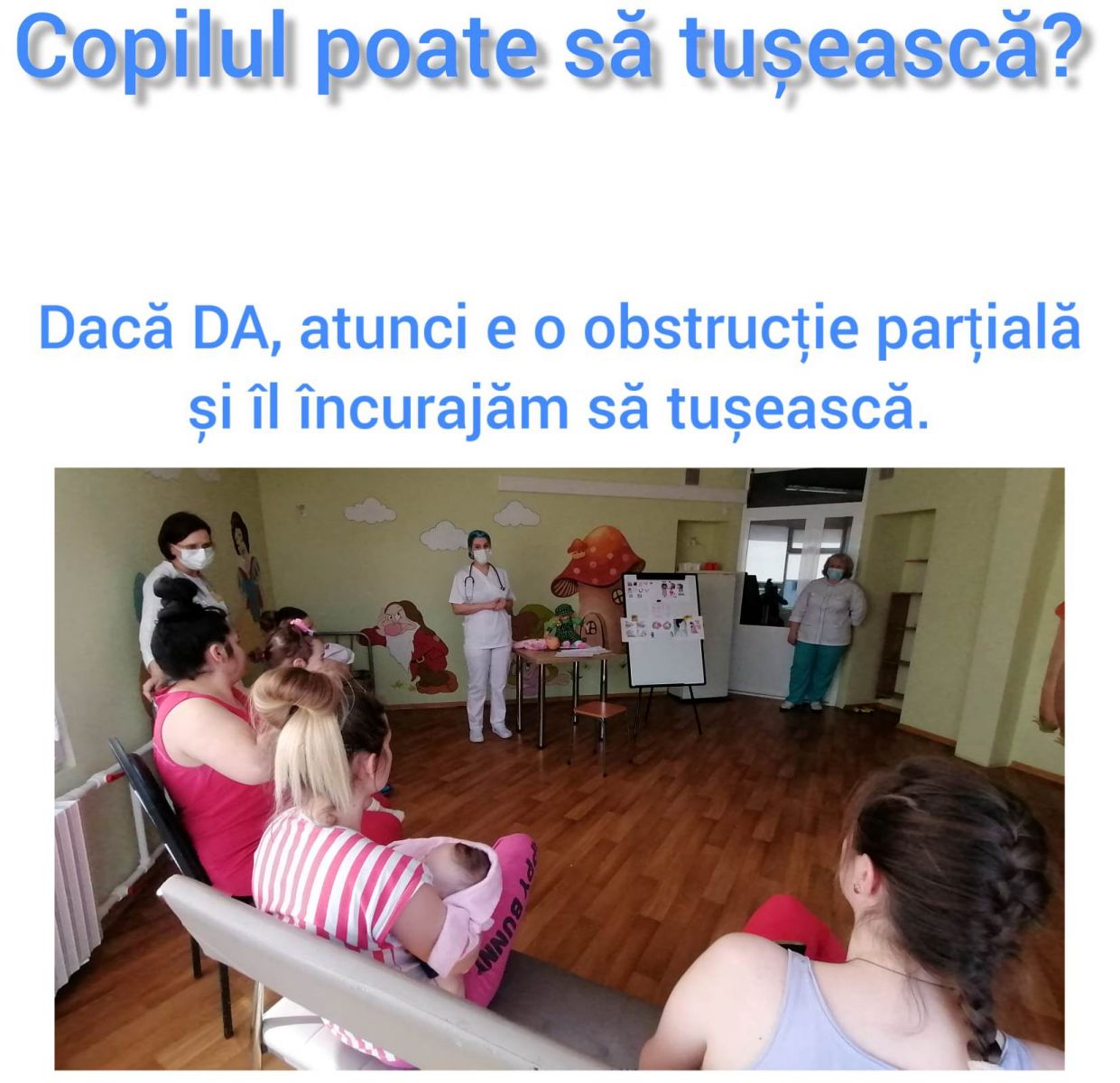 La 24 februarie curent, tema abordată în cadrul instituției a fost "Aspirația corpului străin în căile respiratorii la copil", prezentată îngrijitorilor de către doamna doctor Loriana Dembovski, medic specialist secția Reanimare și Terapie Intensivă.
