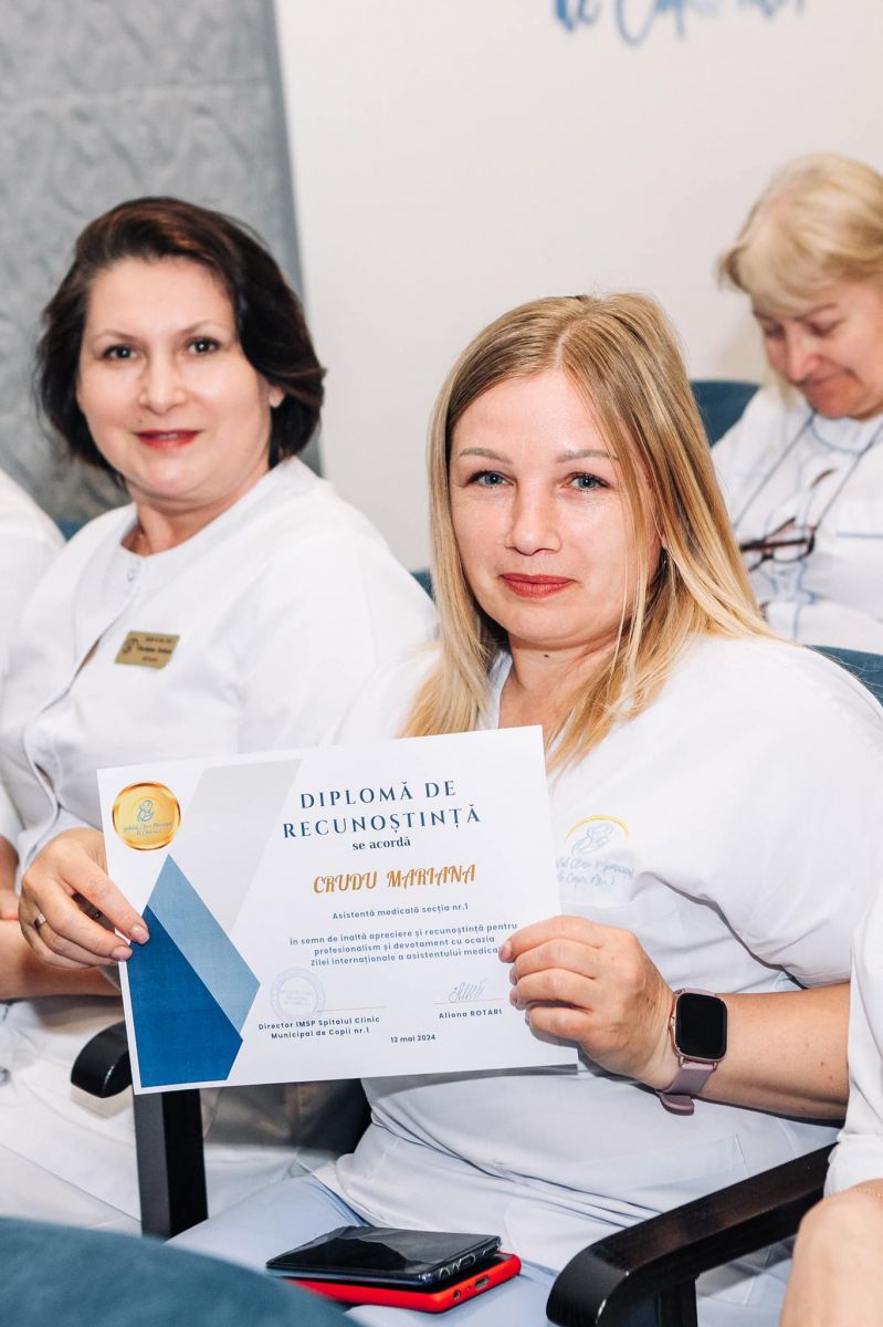 Astăzi, 12 mai 2024, este Ziua Internațională a Asistenților Medicali, fiind marcată la nivel global pentru a recunoaște și a aprecia contribuția esențială a asistenților medicali la sistemul de sănătate și la îngrijirea pacienților din întreaga lume. Dedicarea și profesionalismul, empatia și practicile medicale moderne caracterizează asistenții medicali din cadrul IMSP SCMC nr.1, relatate și în raportul Dnei Marina Boboc, asistenta medicală șefă, la întrunirea colectivului cu ocazia acestui eveniment. Diplome de gratitudine și cuvintele pline de apreciere și recunoaștere au fost aduse de către administrația instituției, care a subliniat importanța vitală a muncii asistenților medicali. Fiecare zâmbet adus pe chipurile micuților noștri pacienți, fiecare gest de încurajare și fiecare mână întinsă pentru a oferi îngrijire medicală demonstrează angajamentul vostru față de cei pe care îi îngrijiți. Astăzi și în fiecare zi, vă mulțumim pentru devotamentul vostru și pentru că faceți lumea un loc mai bun pentru copiii noștri. La mulți ani, dragi asistenți medicali!"