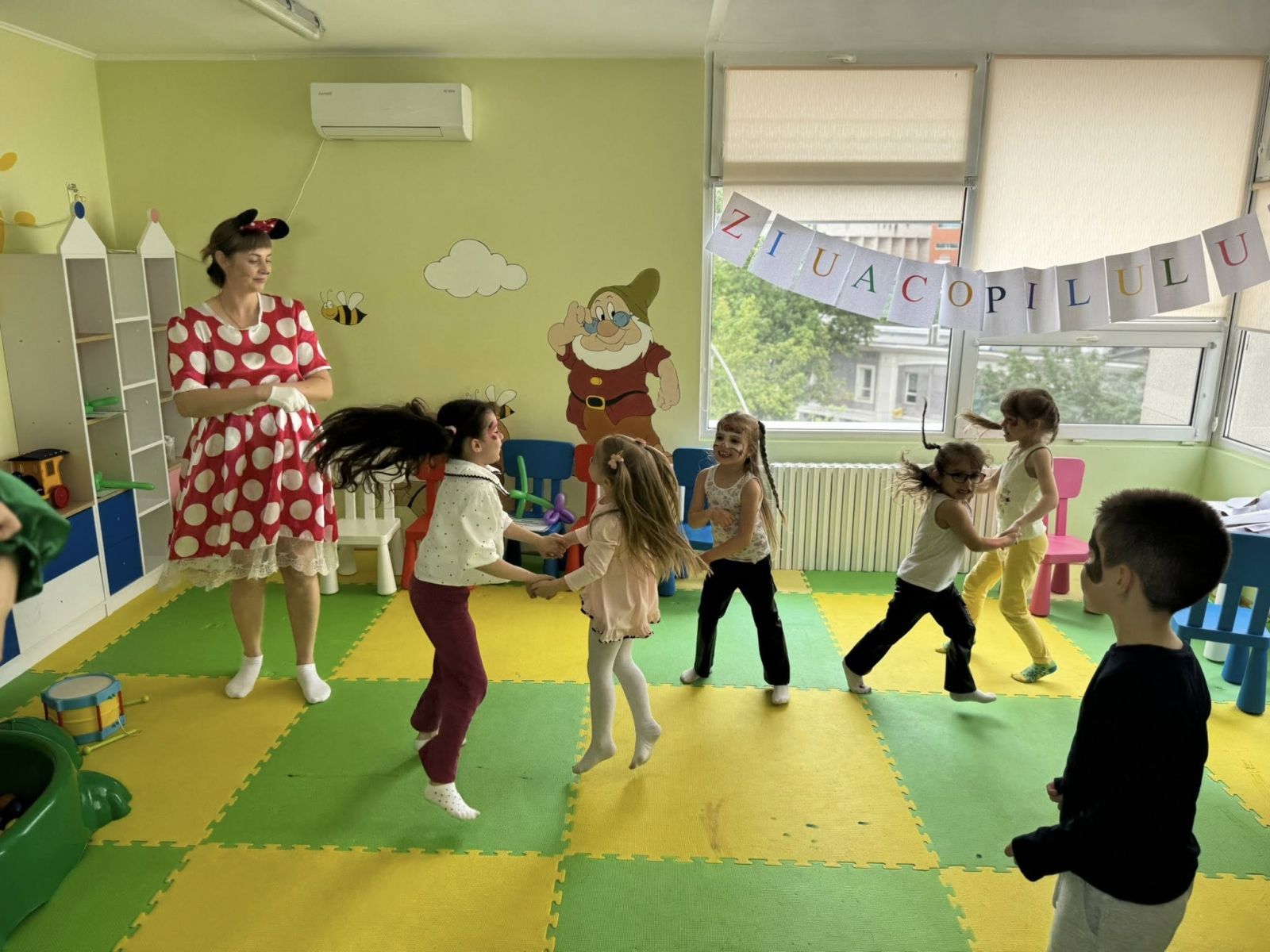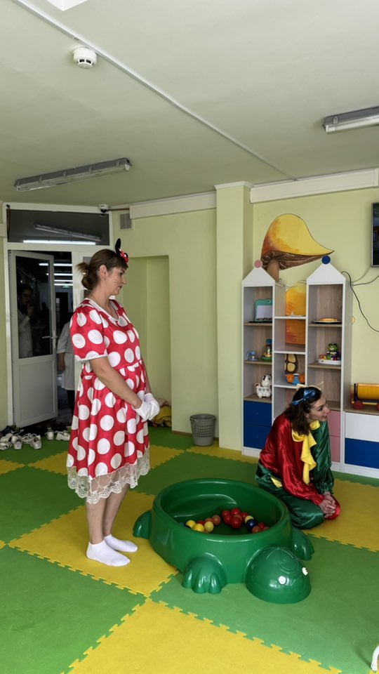 Sala s-a umplut de râsete, dansuri și energie pură de copil. Am avut jocuri, muzică, baloane de săpun, face painting și chiar personaje din povești! Ne-am dorit din suflet ca această zi să fie una de neuitat pentru micii noștri pacienți.