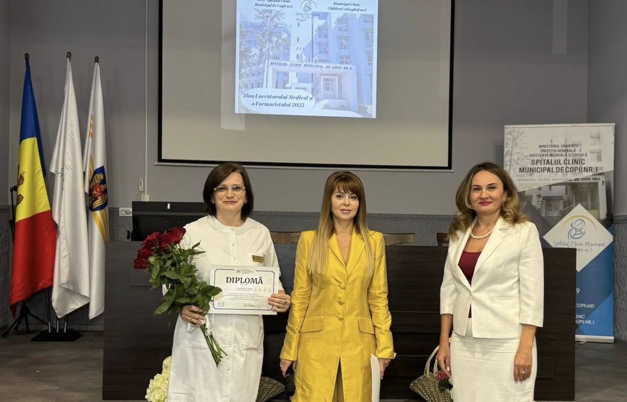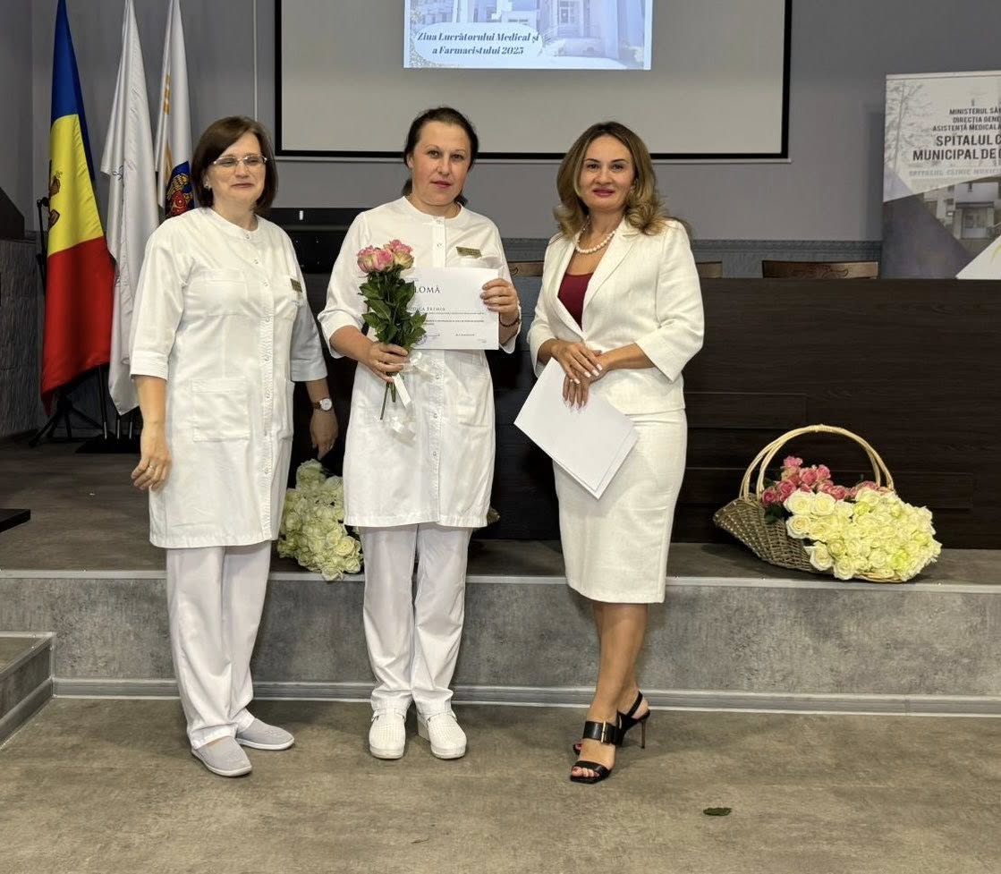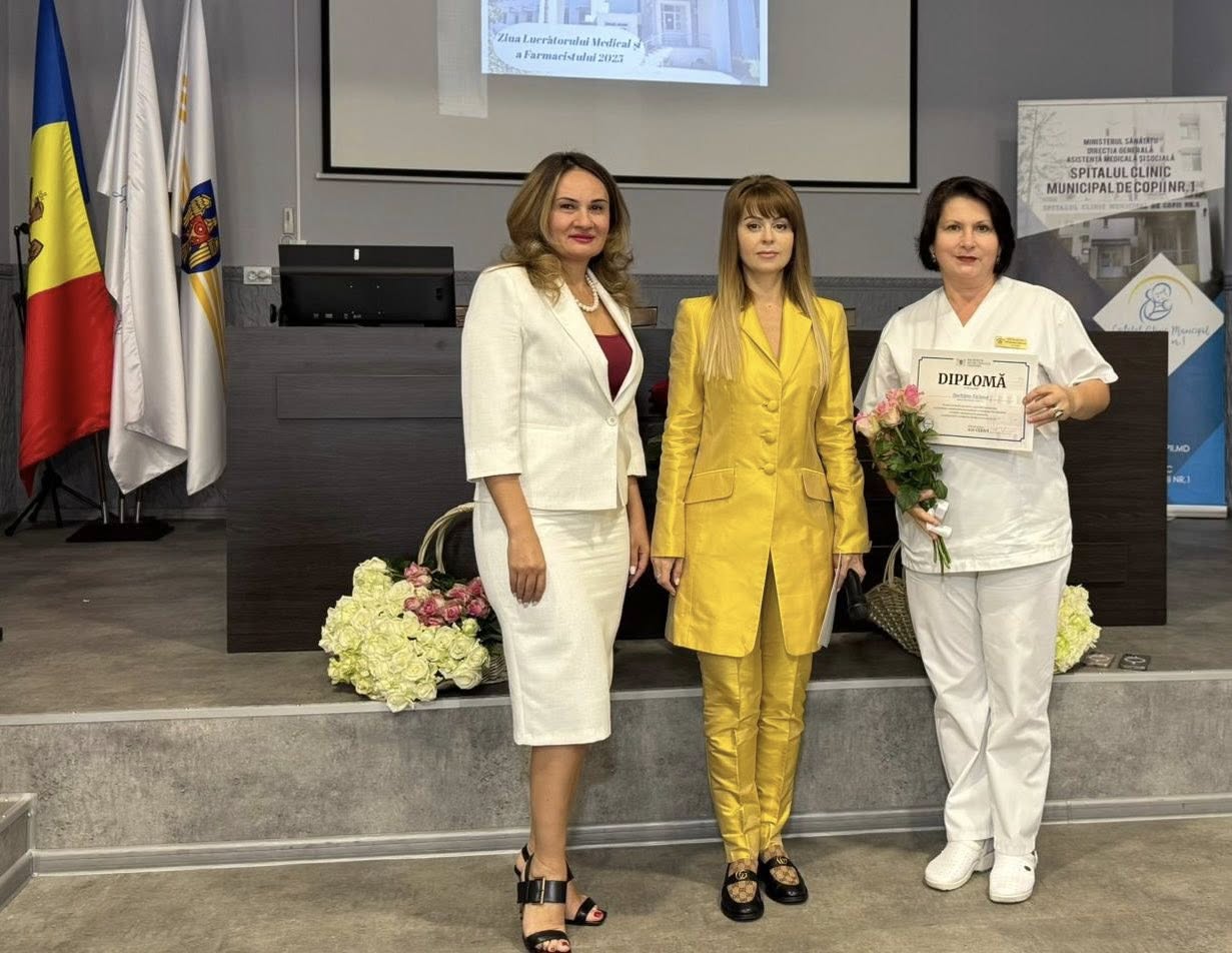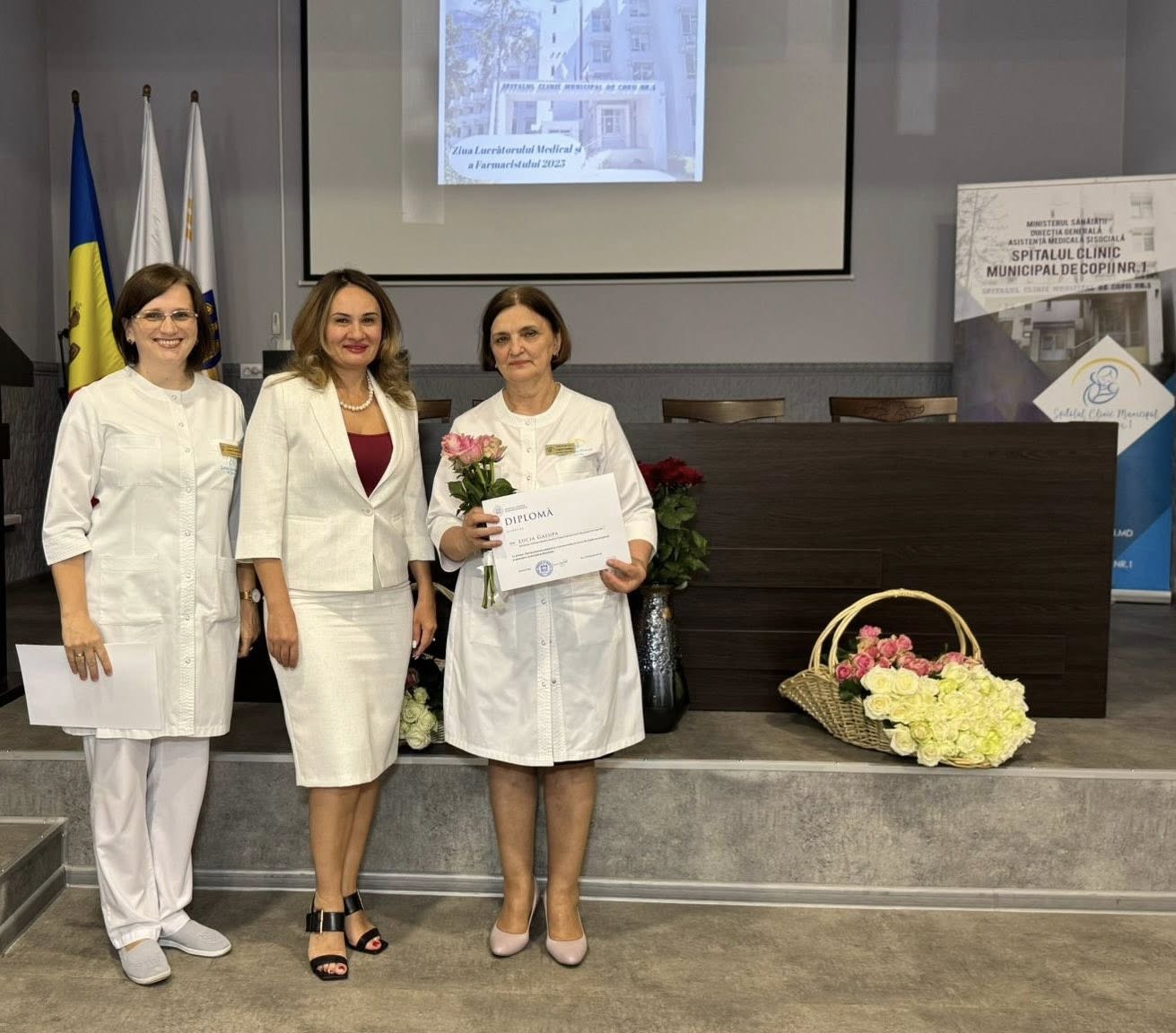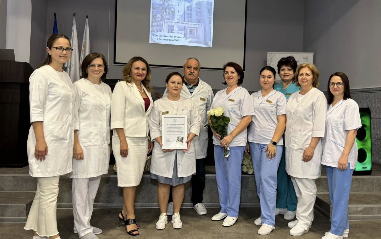 Dna Irina Gutnic, viceprimar al municipiului Chișinău, care a transmis un mesaj oficial de felicitare din partea fondatorului – Primăria municipiului Chișinău. Doamna viceprimar și-a exprimat aprecierea față de munca nobilă a lucrătorilor medicali și a înmânat diplome de gratitudine ca semn al respectului și recunoștinței pentru activitatea depusă în slujba sănătății publice.