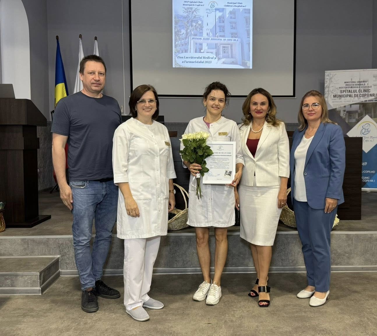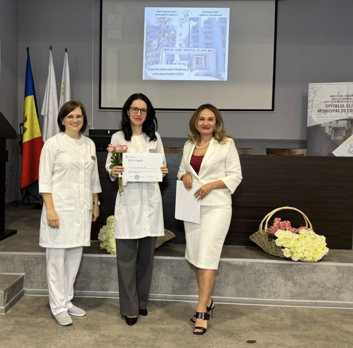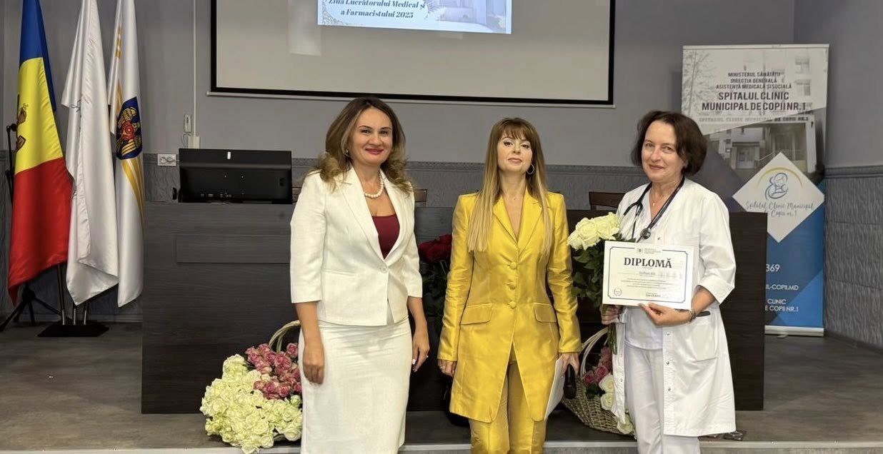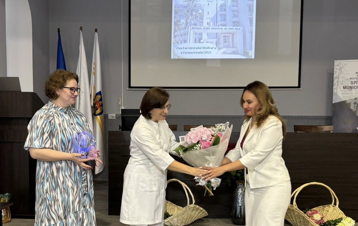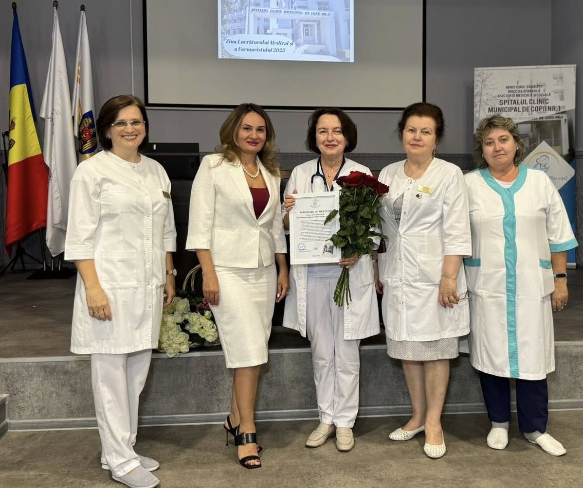 Dna Irina Gutnic, viceprimar al municipiului Chișinău, care a transmis un mesaj oficial de felicitare din partea fondatorului – Primăria municipiului Chișinău. Doamna viceprimar și-a exprimat aprecierea față de munca nobilă a lucrătorilor medicali și a înmânat diplome de gratitudine ca semn al respectului și recunoștinței pentru activitatea depusă în slujba sănătății publice.