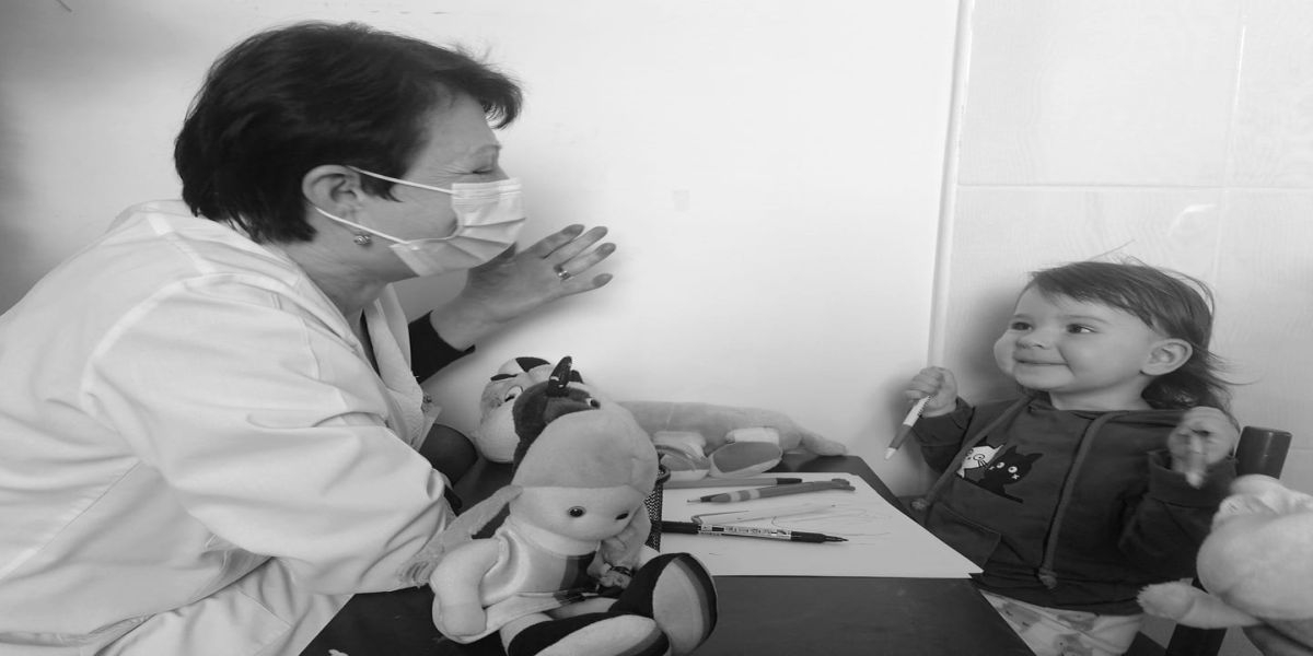 Micul pacient în siguranță cu doamna Doctor Ludmila Muntean.