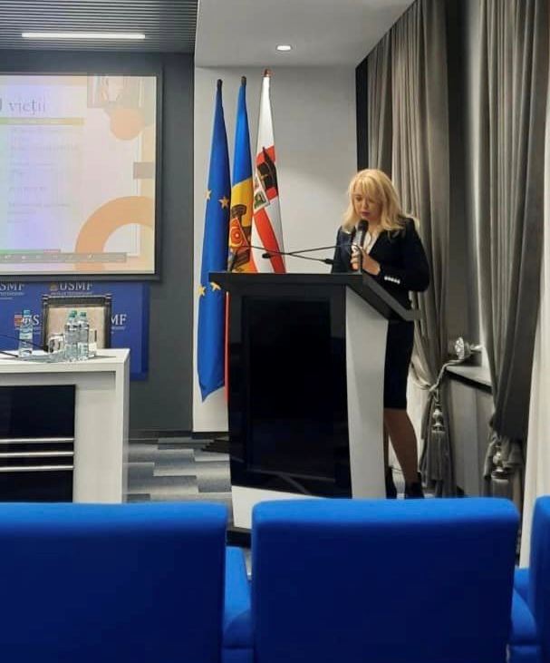 Departamentul Pediatrie USMF "Nicolae Testemitanu". Președintele Comitetului organizatoric - doamna Ala Donos, prof. univ., dr. hab. șt. med. a prezentat raportul de baza privind managementul diagnostic și terapeutic al pneumoniei comunitare la copilul multidisciplinar.