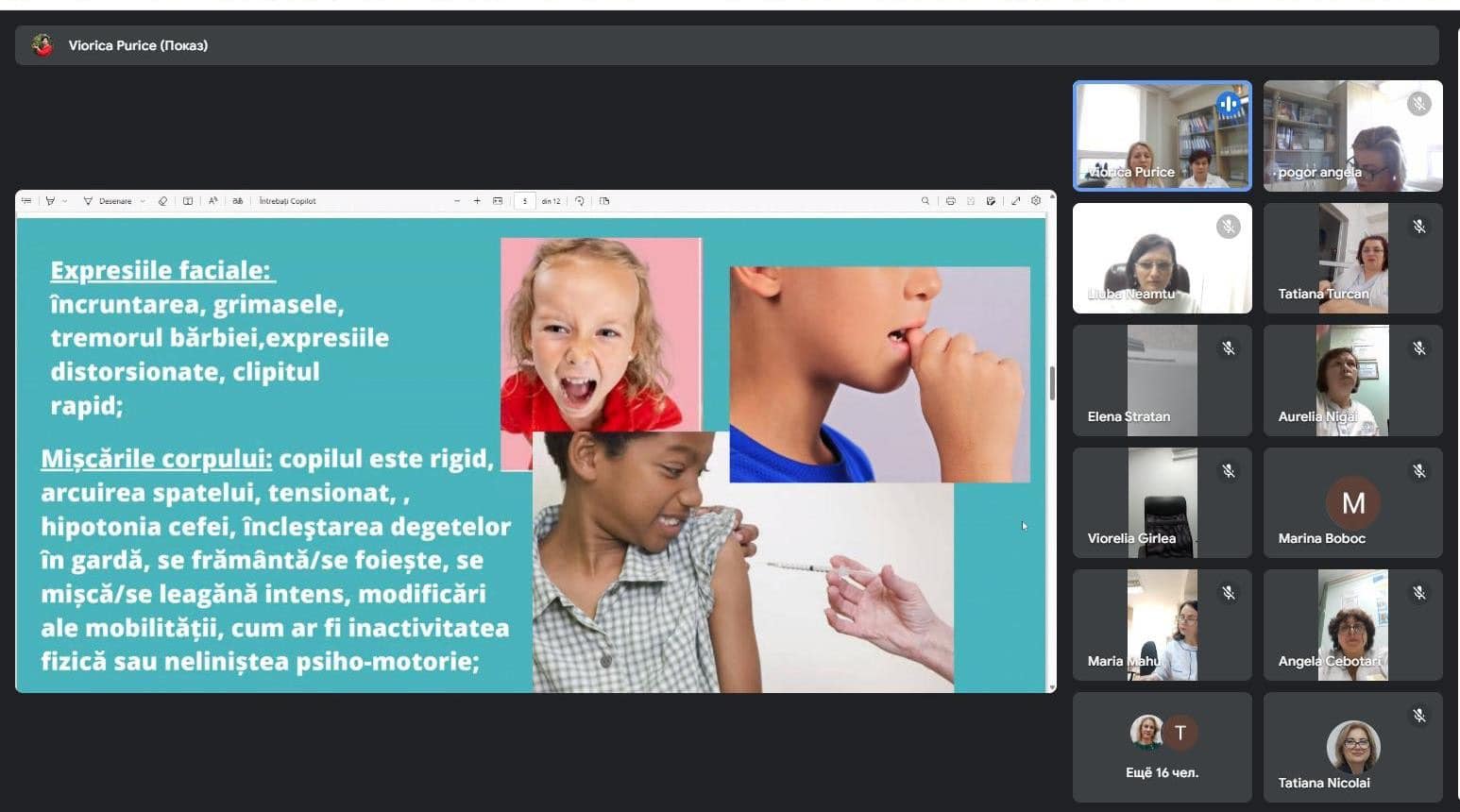 Pe data de 12.04.2024, a avut loc o ședință online dedicată asistentelor medicale din IMSP SCMC nr.1, cu tema "Particularitățile de combatere a sindromului algic în nursing pediatric". Doamna Liliana Ucrainciuc, asistenta medicală din secția reanimare și terapie intensivă, a prezentat informații valoroase despre gestionarea durerii la copii.