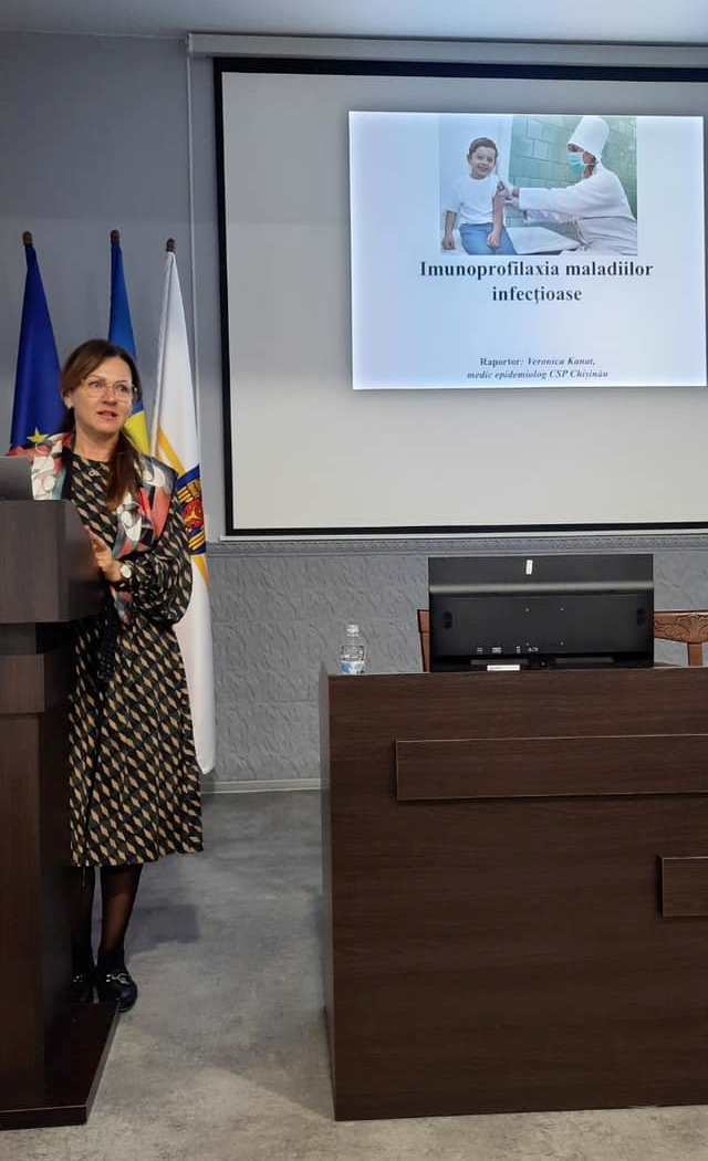 Aspectele generale, inclusiv istoricul și evoluția cunoștințelor despre vaccinare, Calendarul Național de imunizări profilactice au fost prezentate de către Dna Veronica Canat, medic epidemioloig.