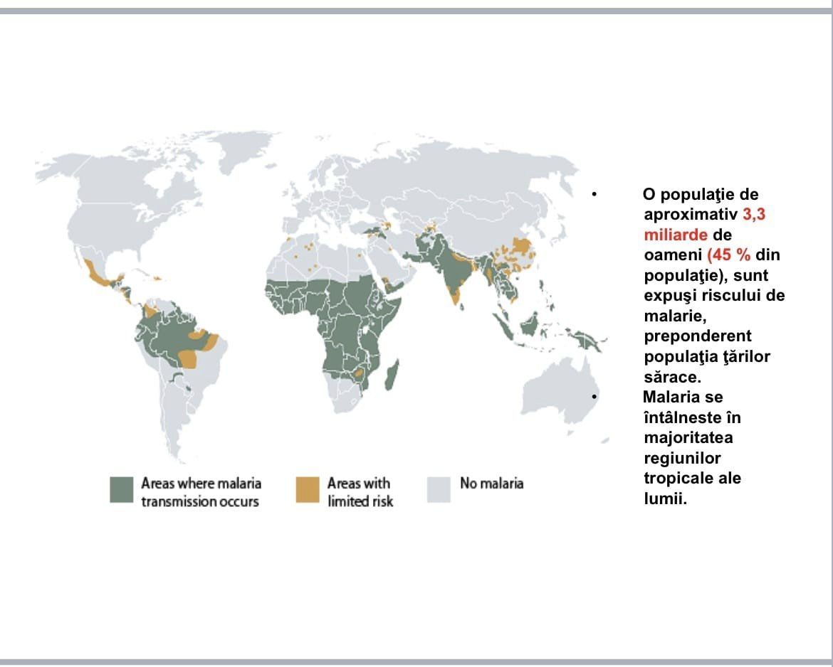 Malaria este o boală infecţioasă frecvent întâlnită în multe zone tropicale şi subtropicale și constituie o problemă prioritară de sănătate publică, situându-se printre primele cinci boli care au impactul cel mai înalt la mortalitatea globală.