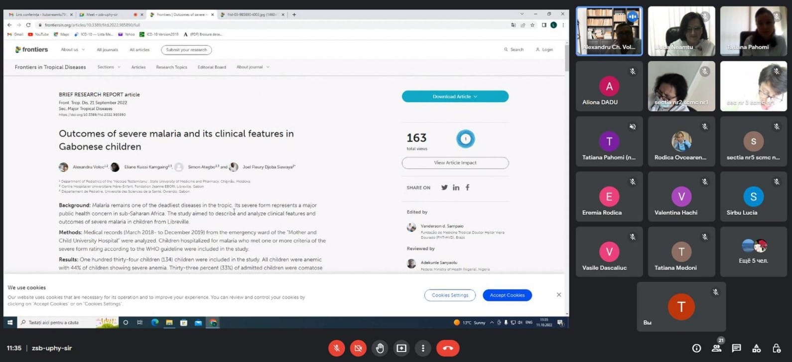 O valoare deosebită întrunirii desfășurate au prezentat informațiile, oferite de către domnul Profesor universitar Alexandu Voloc, în baza experienței profesionale personale cu pacienți bolnavi de malarie în țările africane, reflectate în publicații științifice în reviste de specialitate internaționale cu factor de impact („Outcomes of severe malaria and its clinical features în Gabonese children” și „Malaria beyond its predominant endemic regions: Emerging threat or sporadic events?”).